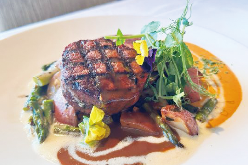 夕暮れの海を望む名店で特別な夜のひとときを。メインはサーモン、白身魚、ショートリブ、フィレミニョンから選択。