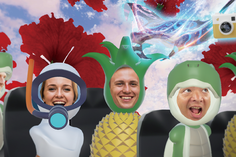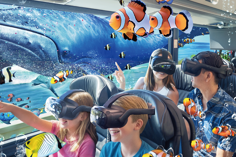 ハワイに隠された海中都市の冒険をコンセプトにした30分のXRバスツアー。ワイキキビーチやダイヤモンドヘッドなどを巡りながら、ハワイの祖霊「アウマクア」の案内で海洋生物を間近に観察。実際の風景と仮想現実のサンゴ礁や火山などが融合する新感覚体験です。さらに、自分がアバターとなって仮想現実に登場し、記念写真も撮影できます(ツアー後ダウンロード)。