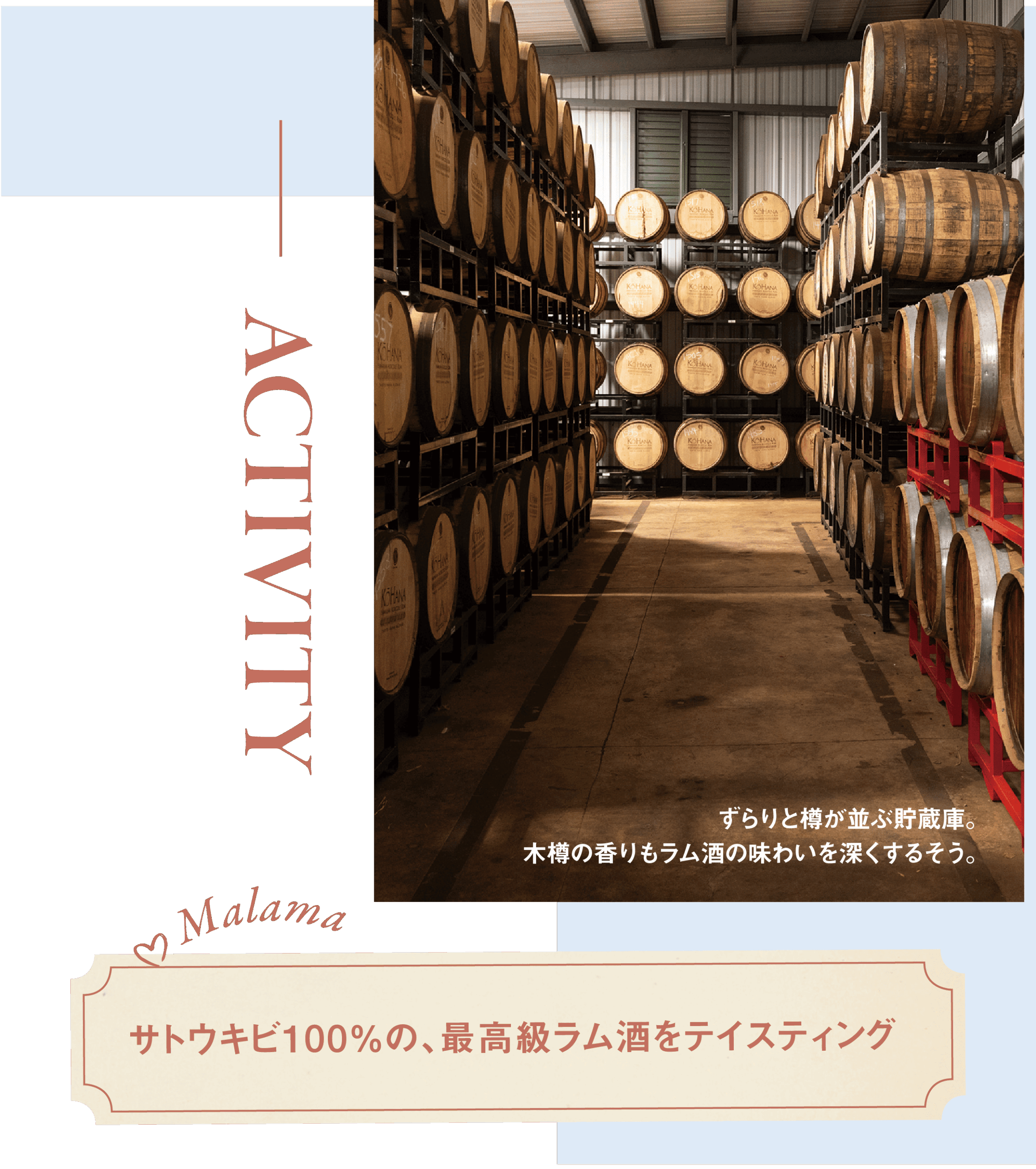 ノースショアの歴史的な町ハレイワを散策した後、サトウキビ農園を兼ねたラム酒の蒸留所「コハナラム」へ。受け継がれた大地を守りながら、自家栽培で育てたハワイ固有のサイトウキビの搾り汁を100%使用して発酵・蒸留する。蒸留したてのものから樽で成熟させたもの、フレーバーなど、テイスティングでその違いを味わえる。日系人から受け継がれたサトウキビ栽培がつなぐ、希少なラム酒に出合える。