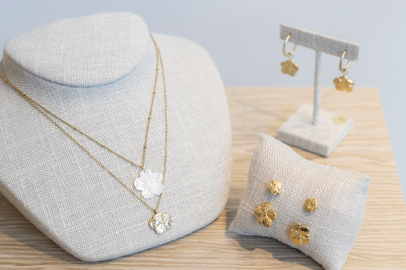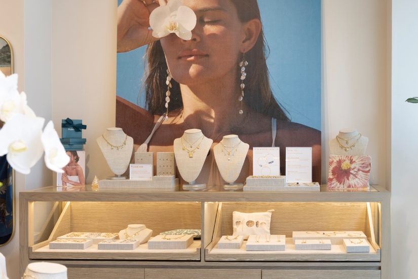 貝殻やハイビスカスなどハワイが感じられるモチーフのジュエリーが揃うローカルジュエリーブランド。ピアスやネックレスなどバラエティに富んだ品揃えでオープンから地元の女性たちの注目を集めている。