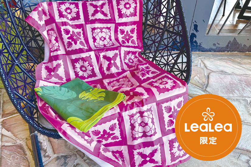 人気のビーチタオルに「ハワイアンキルト」デザインが新登場。$29(80㎝x160㎝)