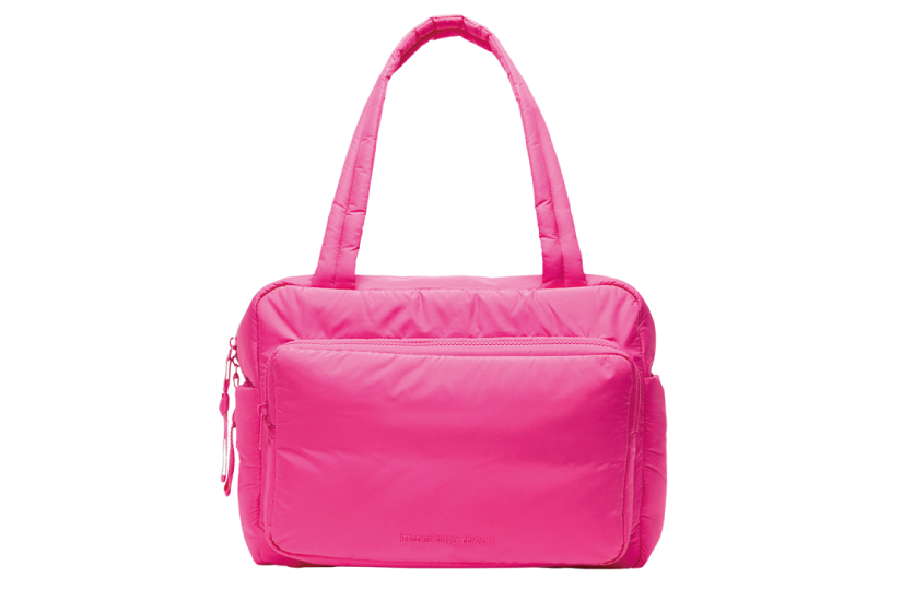 織り込んだらコンパクトにまとまり、広げるとダッフルバッグになる優れもの。ブラック、フラミンゴ、サボテン、キャット、コアラ、アルパカ、フラワーの7デザイン。トロリースリーブ、肩掛けストラップ付き。$39(縦35㎝x横55㎝xマチ22㎝)